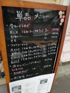 メインの骨なしからあげは「むね」と「もも」があり、鶏を使ったメニューが「砂肝からあげ」「なんこつからあげ」「とり天」「チキン南蛮」「皮ポン酢」「手羽先」などなど